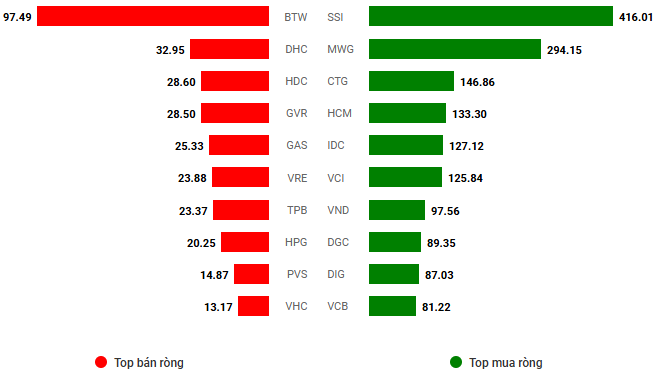Giá trị giao dịch ròng theo mã cổ phiếu. Đvt: Tỷ đồng