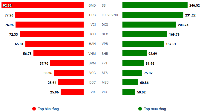 Giá trị giao dịch ròng theo mã cổ phiếu. Đvt: Tỷ đồng