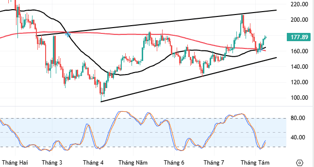 Thêm vào đó, giao cắt vàng (Golden Cross) giữa đường trung bình SMA 50 và đường trung bình SMA 200 đã xuất hiện vào 07/2025 càng củng cố thêm cho đà tăng trong thời gian tới.