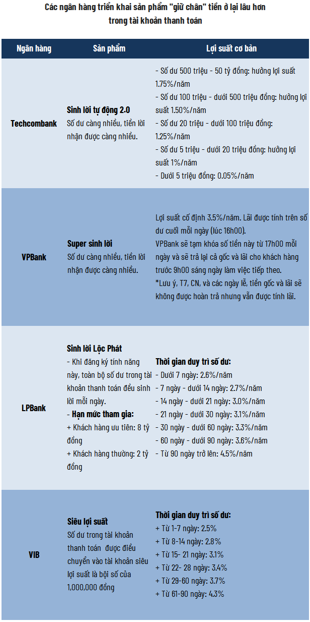 Tuy nhiên, việc giữ chân dòng tiền này lại không hề dễ dàng, bởi khách hàng thường không mặn mà với việc để “tiền chết” trong tài khoản thanh toán mà không sinh lợi đáng kể.