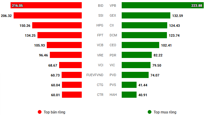 Giá trị giao dịch ròng theo mã cổ phiếu. Đvt: Tỷ đồng