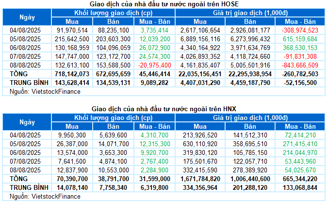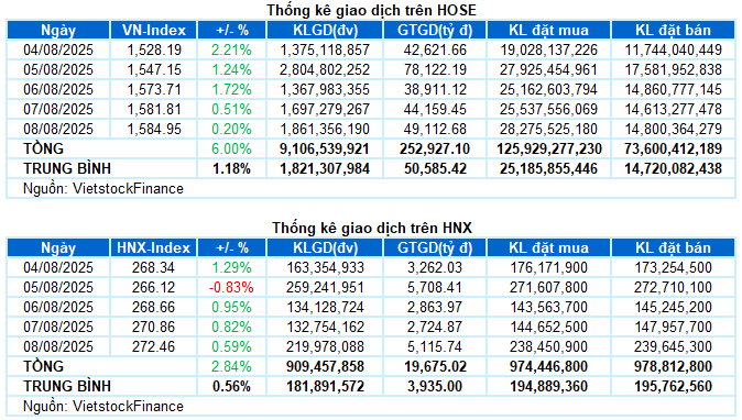 I. THỊ TRƯỜNG CHỨNG KHOÁN VIỆT NAM TUẦN 04-08/08/2025