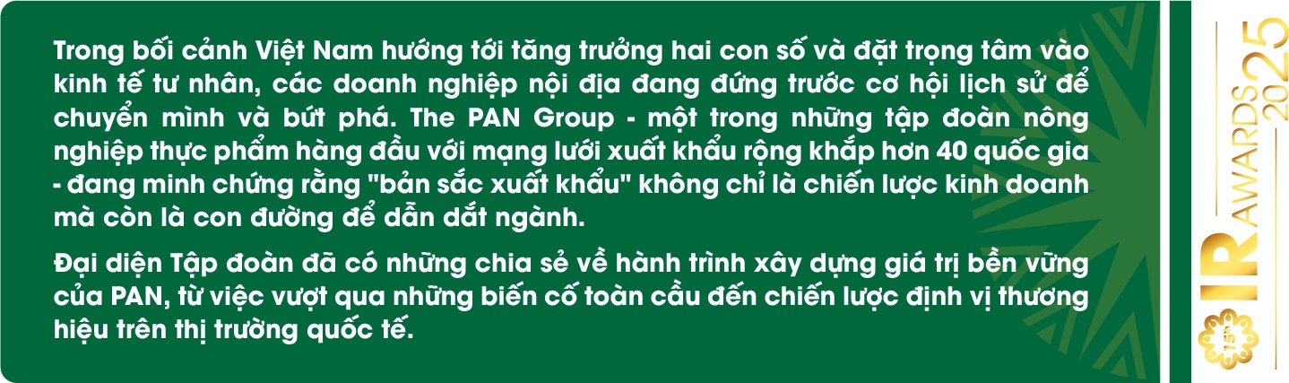 Trong bối cảnh hiện nay, khi chủ nghĩa bảo hộ, rào cản phi thuế và các biện pháp phòng vệ thương mại đang gia tăng ở nhiều quốc gia, việc xuất khẩu chắc chắn không còn là con đường bằng phẳng. Tuy nhiên, với PAN, đây không phải là rủi ro, mà là một "bộ lọc tự nhiên" giúp phân hóa rõ ràng giữa các doanh nghiệp: chỉ những ai đầu tư bài bản vào chất lượng sản phẩm, tuân thủ nghiêm ngặt các tiêu chuẩn quốc tế và xây dựng hệ thống quản trị ESG minh bạch, hiệu quả mới có thể trụ vững và bứt phá.