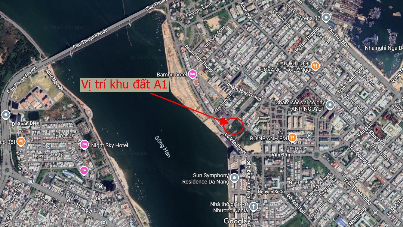 Cụ thể, khu đất ký hiệu A1 thuộc dự án khu tái định cư cuối tuyến Bạch Đằng Đông, phường Sơn Trà, diện tích 11,371 m2, có vị trí tiếp giáp các trục đường lớn như Bùi Dương Lịch ở phía Bắc, Lê Văn Duyệt phía Nam và Hồ Hán Thương ở phía Tây. Phía Đông giáp khu đất A2.