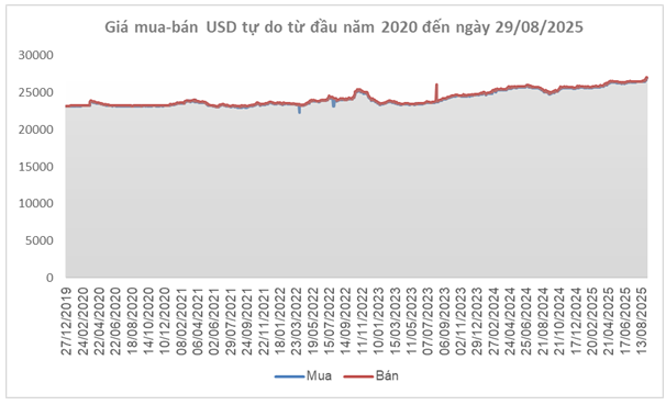Tỷ giá tham khảo tại Cục Quản lý dự trữ ngoại hối cũng tăng tương ứng, lên 24,036 – 26,460 đồng/USD (mua vào – bán ra).
