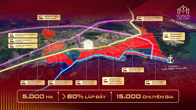 Điều này mở ra triển vọng phát triển kinh tế dịch vụ cao cấp: từ khách sạn, trung tâm hội nghị quốc tế, đến căn hộ dịch vụ, biệt thự nghỉ dưỡng cho chuyên gia quốc tế. Một chuẩn sống “work – live – relax” đang dần định hình tại Phú Mỹ.