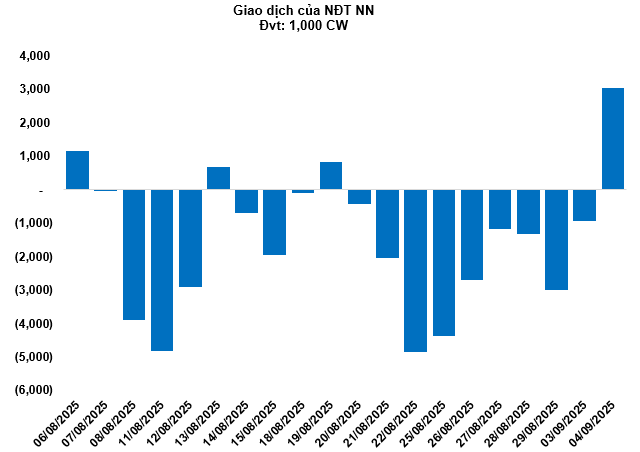 Thị trường chứng quyền ngày 05/09/2025: Khối ngoại quay lại mua ròng mạnh