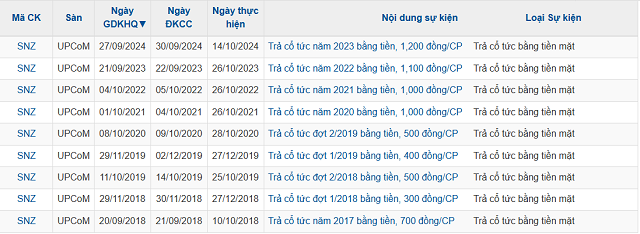 | Đợt chi trả cổ tức năm 2024 cao nhất kể từ khi SNZ lên sàn | ||