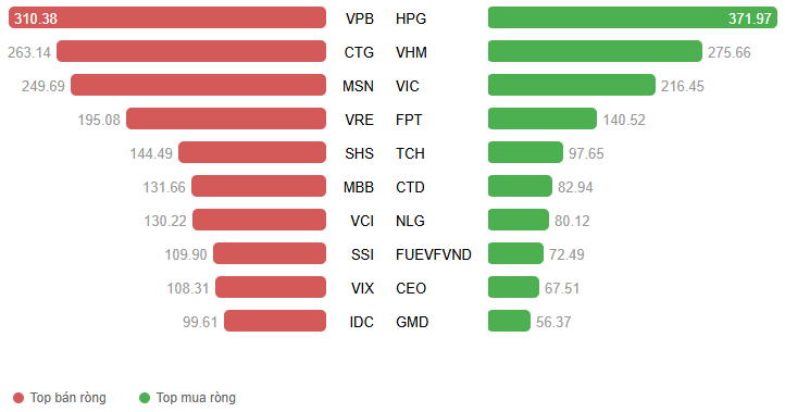 Giá trị giao dịch ròng theo mã cổ phiếu. Đvt: Tỷ đồng