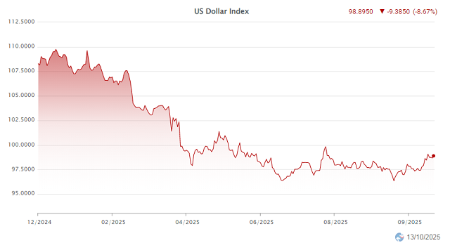 Diễn biến DXY từ đầu năm 2025 đến ngày 13/10