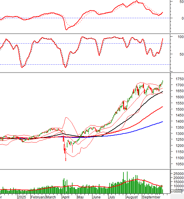 Trong phiên giao dịch sáng ngày 10/10/2025, VN-Index tiếp tục tăng trưởng và đạt mức cao nhất lịch sử sau khi phá vỡ hoàn toàn đỉnh cũ tháng 09/2025 (tương đương vùng 1,700-1,711 điểm).