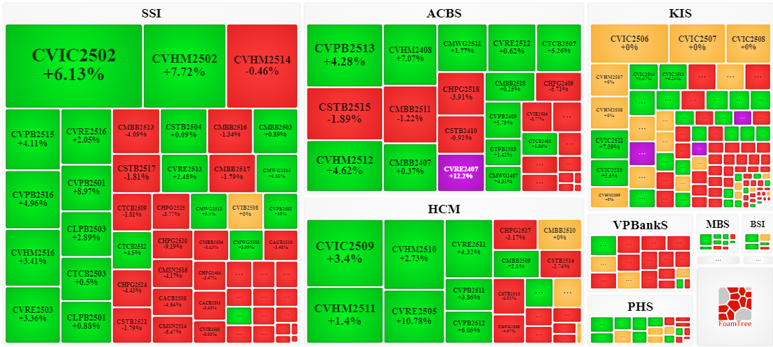 Thị trường chứng quyền ngày 15/10/2025: Sắc xanh đỏ đan xen