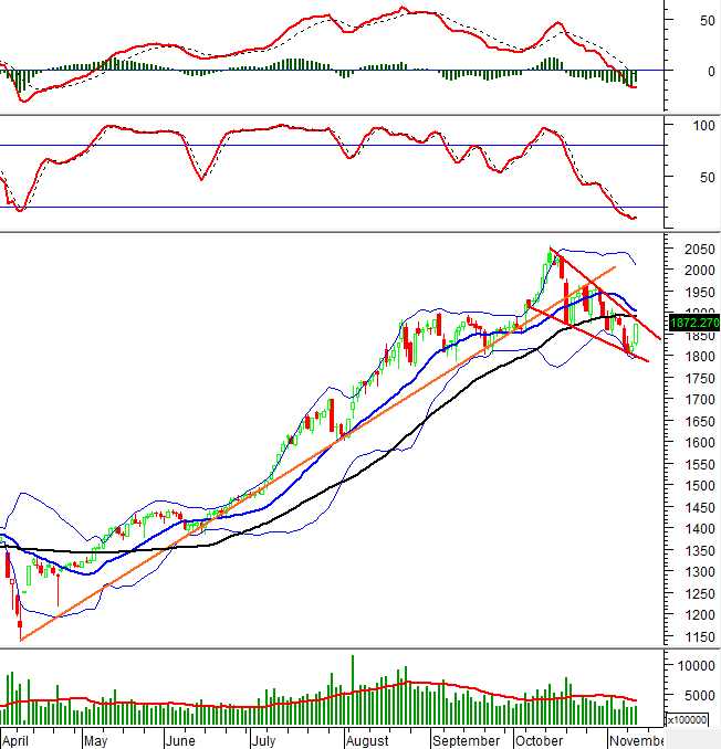 Trong phiên giao dịch ngày 12/11/2025, VN30-Index tiếp tục tăng phiên thứ 2 liên tiếp đồng thời xuất hiện mẫu hình nến White Marubozu kèm theo khối lượng giao dịch có sự gia tăng so với phiên trước cho thấy tâm lý nhà đầu tư đã bớt bi quan.