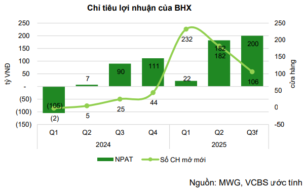 CTCK Vietcombank (VCBS) đánh giá Bách hóa Xanh (BHX) đang khẳng định vai trò là động lực tăng trưởng cốt lõi và trụ cột lợi nhuận chiến lược của CTCP Đầu tư Thế giới Di động (HOSE: MWG) khi duy trì mức lãi ổn định trong nhiều quý liên tiếp, qua đó đóng góp ngày càng lớn vào tổng lợi nhuận hợp nhất của tập đoàn.