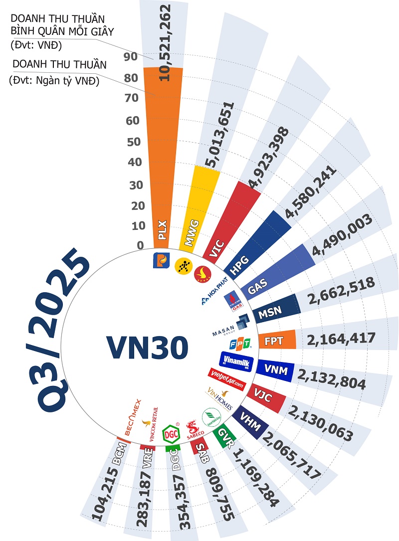 Doanh nghiệp VN30 mang về bao nhiêu doanh thu mỗi giây?