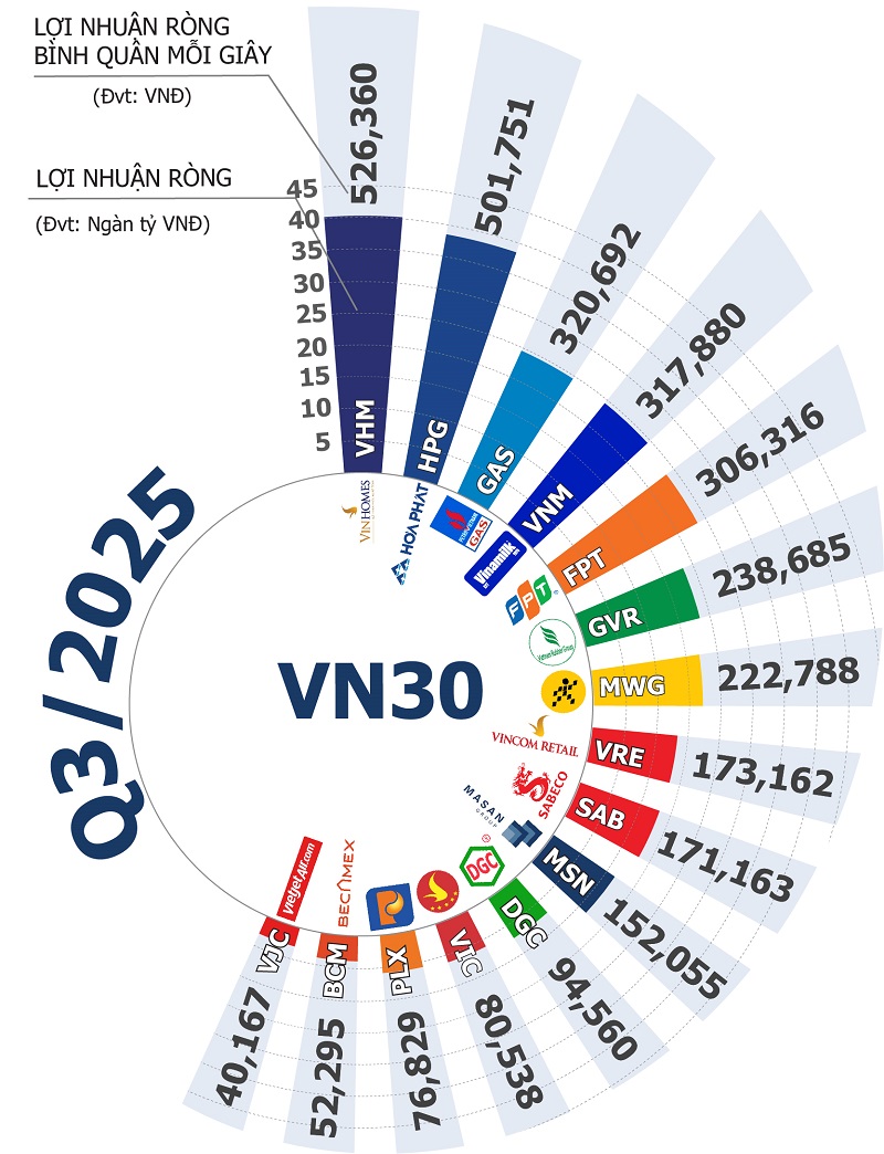 Doanh nghiệp VN30 mang về bao nhiêu lợi nhuận ròng mỗi giây?