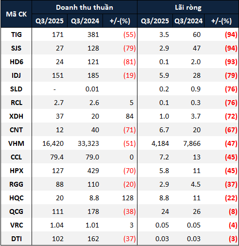 Dù có nhiều doanh nghiệp đột biến về lợi nhuận, kết quả kinh doanh của nhóm bất động sản nhà ở trên sàn chứng khoán trong quý 3/2025 vẫn đi lùi so với cùng kỳ.