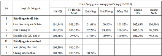 Biến động giá một số loại bất động sản trên thị trường thứ cấp tại một số địa phương trong quý 3/2025