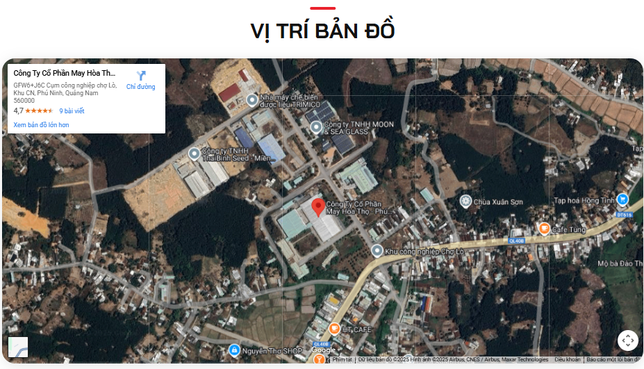 CTCP May Hòa Thọ - Phú Ninh được thành lập vào ngày 15/03/2012, trụ sở tại cụm công nghiệp Chợ Lò - khi đó còn dùng địa chỉ xã Tam Thái, huyện Phú Ninh, tỉnh Quảng Nam - nay là xã Chiên Đàn, TP. Đà Nẵng.