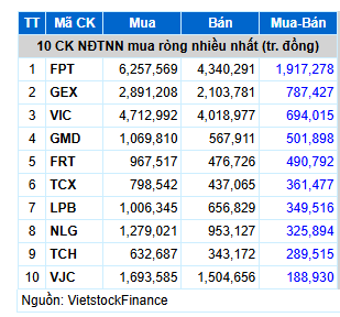 Cổ phiếu nào trên HOSE được khối ngoại mua ròng mạnh nhất trong tháng 10?Đó là FPT, GEX, VIC |
