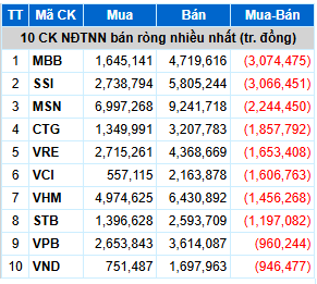 Cổ phiếu nào trên HOSE bị khối ngoại bán ròng mạnh nhất trong tháng 10?Đó là MBB, SSI, MSN |