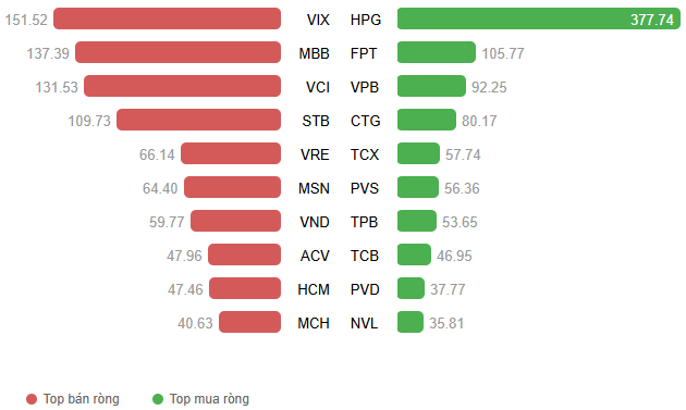 Giá trị giao dịch ròng theo mã cổ phiếu. Đvt: Tỷ đồng
