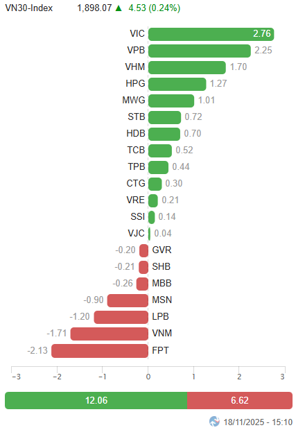 I. PHÂN TÍCH THỊ TRƯỜNG CHỨNG KHOÁN CƠ SỞ NGÀY 18/11/2025