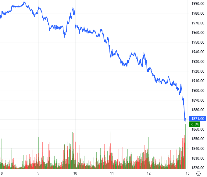 Đồ thị intraday của VN30F2512 trong giai đoạn 08-12/12/2025