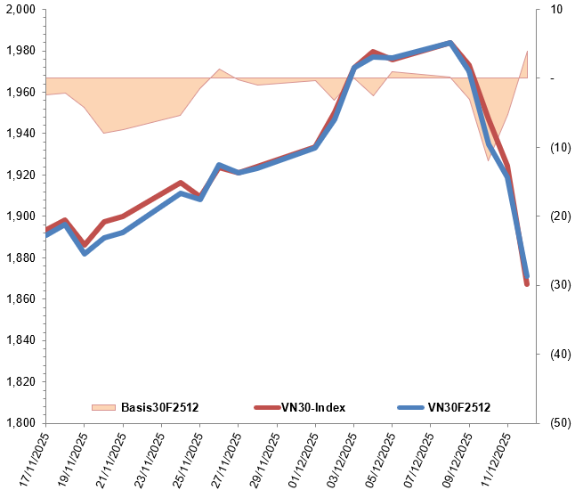 Biến động VN30F2512 và VN30-Index