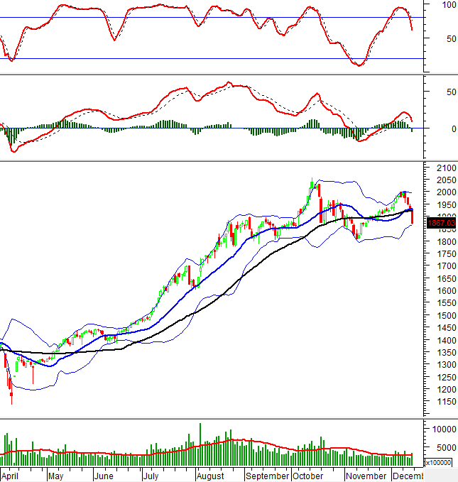 Trong phiên giao dịch ngày 12/12/2025, VN30-Index tiếp tục giảm điểm phiên thứ 4 liên tiếp đồng thời xuất hiện mẫu hình nến Black Marubozu kèm theo khối lượng giao dịch gia tăng vượt mức trung bình 20 phiên cho thấy tâm lý bi quan của nhà đầu tư.