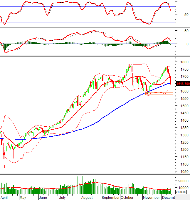 Ngoài ra, VN-Index đang kiểm tra lại đường SMA 100 ngày. Nếu tình hình không có sự cải thiện và xu hướng giảm ngắn hạn vẫn tiếp diễn thì khả năng cao chỉ số sẽ tiếp tục lui về kiểm tra đáy cũ tháng 11/2025 (tương đương vùng 1,570-1,590 điểm).