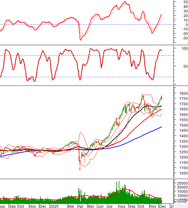 Trong phiên giao dịch sáng ngày 09/12/2025, VN-Index rung lắc mạnh khi test lại đỉnh cũ tháng 10/2025 (tương đương vùng 1,760-1,795 điểm).