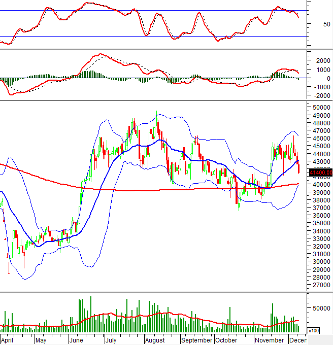 Giá PVD đang vượt xuống khỏi dải dưới (Lower Band) của Bollinger Bands trong khi chỉ báo MACD và Stochastic Oscillator đều tiếp tục giảm sau khi cho tín hiệu bán càng làm gia tăng thêm sự bi quan trong ngắn hạn.