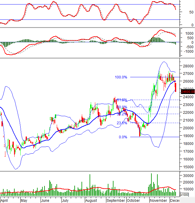 Nếu tình hình không có sự cải thiện và kịch bản điều chỉnh trong ngắn hạn vẫn diễn ra trong các phiên tới thì ngưỡng Fibonacci Projection 61.8% (tương đương 23,200-23,700) sẽ là vùng hỗ trợ cho PVD.