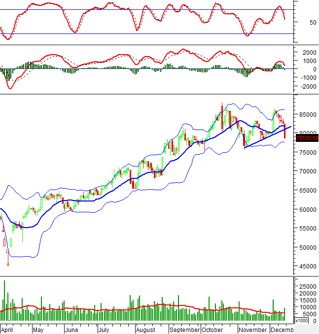 Đường trendline ngắn hạn (tương đương vùng 79,000-80,500) bị phá vỡ trong đợt điều chỉnh vừa qua.