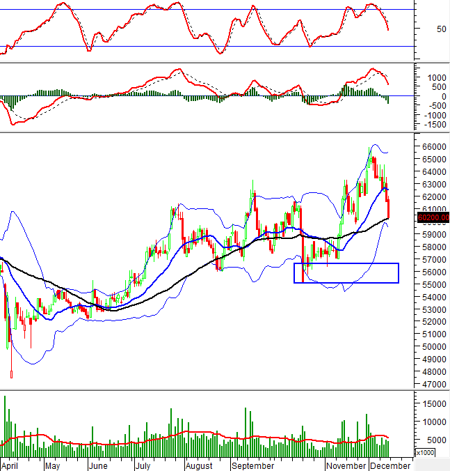 Do giá đang ở khá sát Lower Band của Bollinger Bands nên dự kiến sẽ tiếp tục giảm khi dải này bung nén.