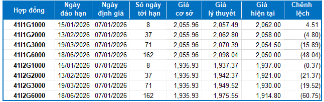 Dựa trên phương pháp định giá hợp lý với thời điểm khởi đầu ngày 07/01/2026, khung giá hợp lý của các hợp đồng tương lai đang được giao dịch trên thị trường được thể hiện như sau:
