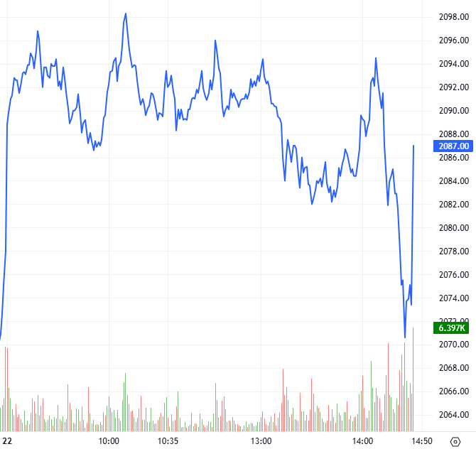 Trong phiên giao dịch ngày 22/01/2026, hợp đồng 41I1G2000 sớm bật tăng mạnh ngay từ khi mở cửa và nhanh chóng chuyển sang trạng thái giằng co kéo dài với lợi thế có phần nghiêng về phe Long trong suốt phiên sáng. Bước sang phiên chiều, áp lực bán xuất hiện trở lại khiến đà tăng trước đó của I1G2000 dần thu hẹp nhưng bên mua vẫn nỗ lực kéo hợp đồng này phục hồi và lấy lại mốc tham chiếu. Qua đó, I1G2000 đóng cửa trong sắc xanh với mức tăng nhẹ 9 điểm.