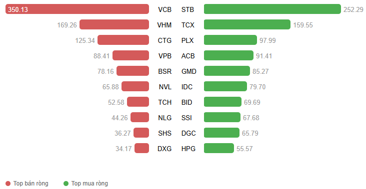 Giá trị giao dịch ròng theo mã cổ phiếu. Đvt: Tỷ đồng
