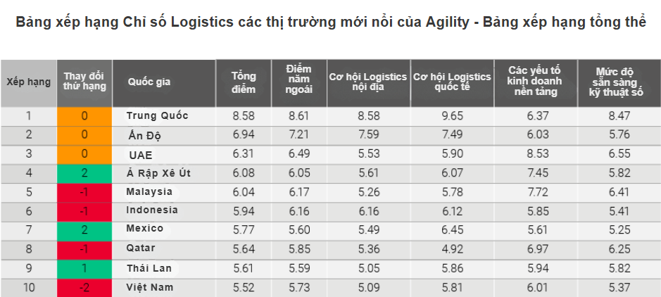 Nguồn: Agility Emerging Markets Logistics Index 2025.