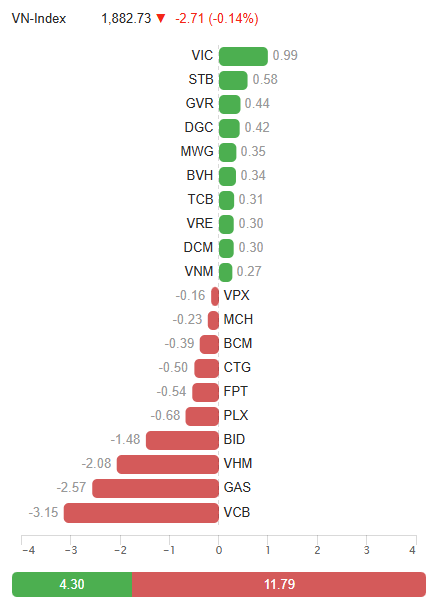Ở chiều ngược lại, VIC gây bất ngờ khi từ nhóm gây áp lực lại đảo chiều tăng giá và kết phiên mang về 0.99 điểm cho chỉ số, cao nhất thị trường.