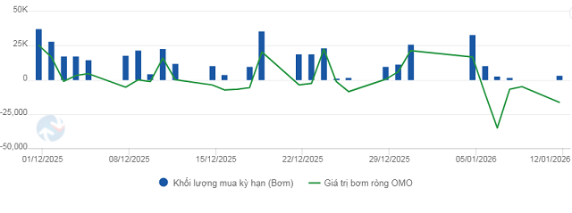 Diễn biến bơm hút ròng nghiệp vụ OMO trong tháng 12/2025 đến đầu năm 2026. Đvt: Tỷ đồng