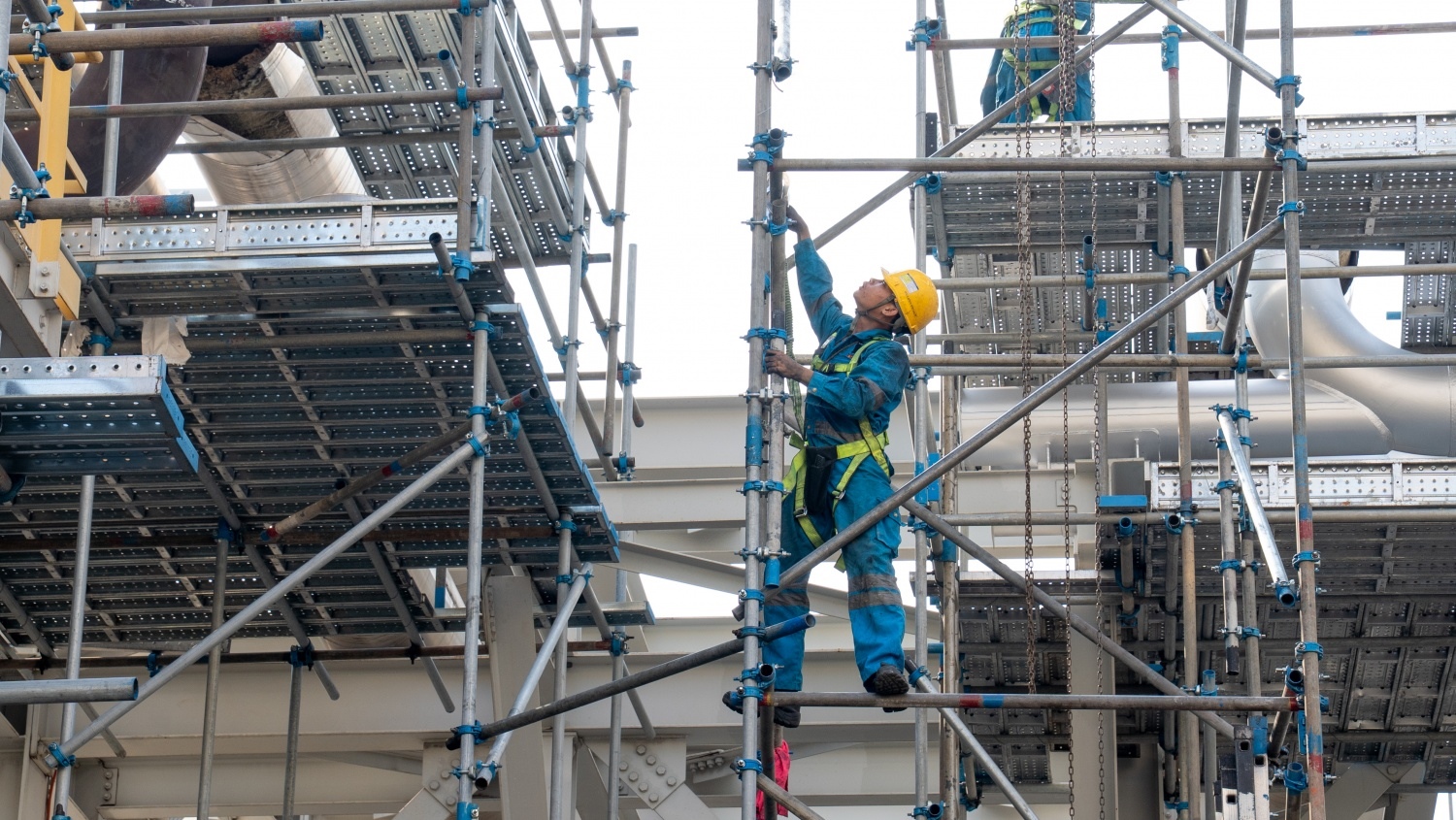 Giàn giáo được công nhân tiến hành tháo rời theo đúng quy trình.