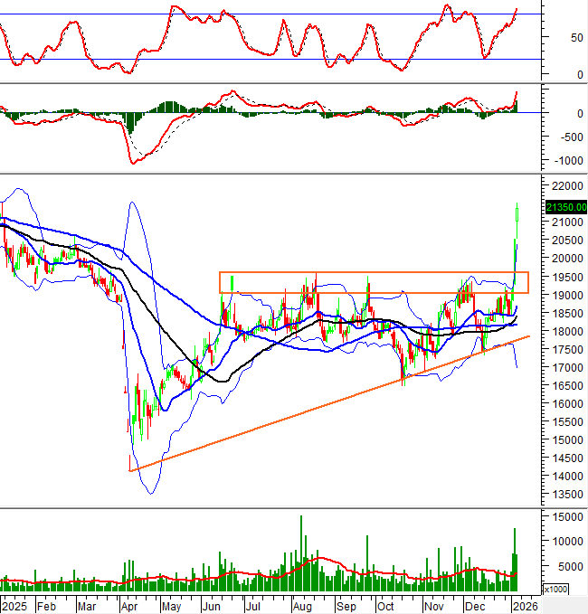 Chỉ số tiếp tục bám vào Upper Band của Bollinger Bands và mục tiêu mới sẽ là vùng 1,935-1,950 điểm.