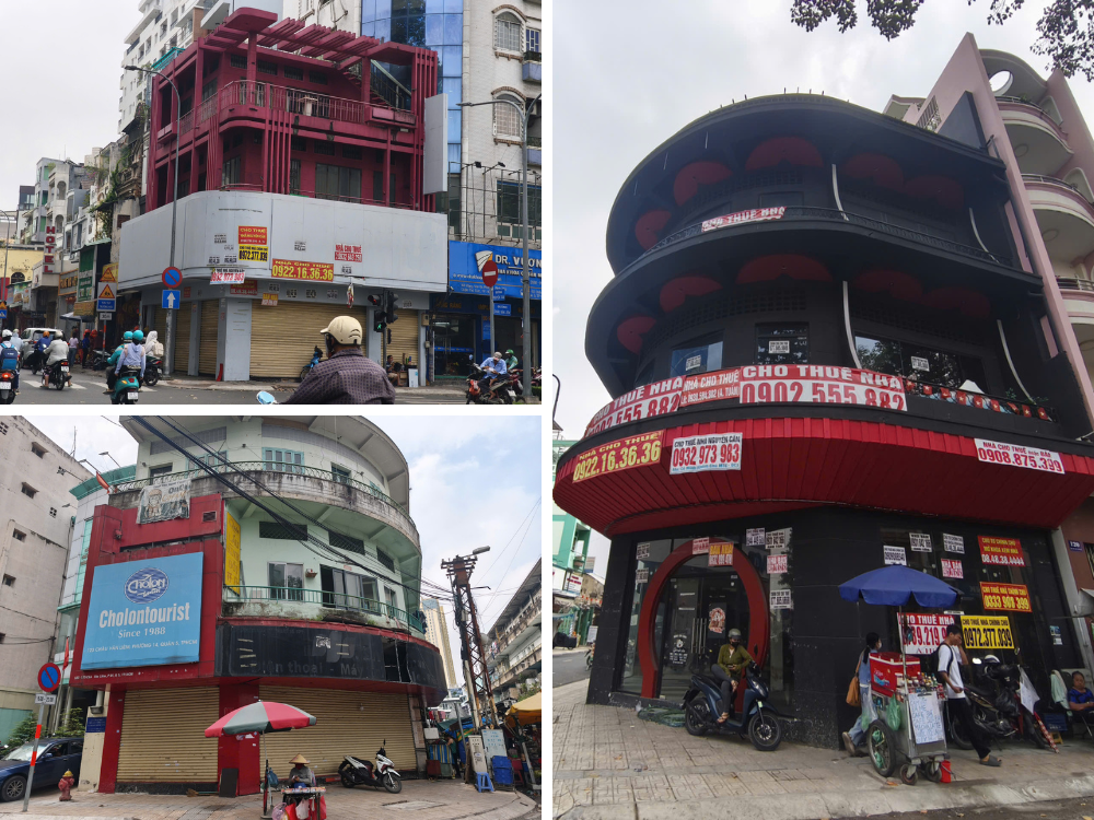 Những mặt bằng ở góc đường với 2 mặt tiền nằm chờ chủ thuê mới trên đường Châu Văn Liêm, quận 5 cũ - Ảnh: Thượng Ngọc |