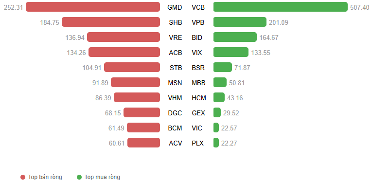 Giá trị giao dịch ròng theo mã cổ phiếu. Đvt: Tỷ đồng