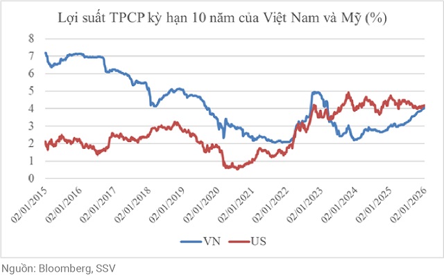 Riêng trong năm 2026, kỳ vọng sẽ chứng kiến tác động tích cực từ những thay đổi lớn được hiện thực hóa như (1) đẩy mạnh đầu tư phát triển hạ tầng, đặc biệt là các siêu dự án mang tầm vóc thế kỷ; (2) chuyển biến mạnh mẽ từ thị trường vốn, bao gồm thay đổi cơ cấu tín dụng và tốc độ phát triển thị trường chứng khoán; (3) đột phá về thể chế, pháp luật. Với kỳ vọng đó, SSV tin rằng ngành ngân hàng - với vai trò là xương sống của nền kinh tế; chứng khoán - với nhiều cơ hội mở ra từ sự phát triển của thị trường vốn và nâng hạng lên thị trường mới nổi; và các tập đoàn lớn, tham gia sâu vào chuỗi giá trị các dự án trọng điểm quốc gia, có vai trò quan trọng trong việc kiến thiết đất nước sẽ có nhiều tiềm năng bứt phá.