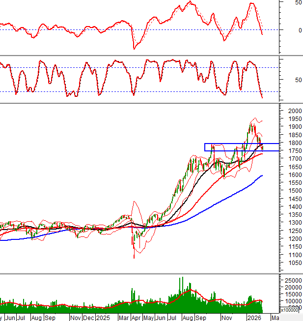 Trong phiên giao dịch sáng ngày 10/02/2026, HNX-Index tiếp tục test đường Middle của Bollinger Bands.