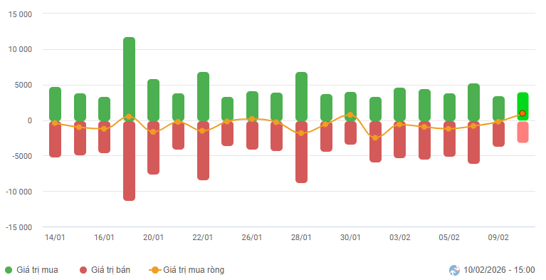 Biến động của dòng tiền từ khối ngoại: Khối ngoại mua ròng trong phiên giao dịch ngày 10/02/2026. Nếu nhà đầu tư nước ngoài duy trì hành động này trong những phiên tới thì tình hình có thể chuyển biến tích cực hơn.