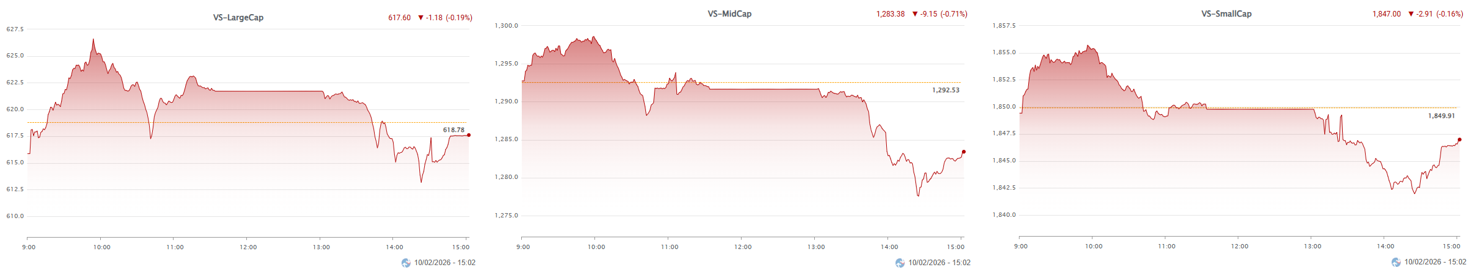 - Xét theo nhóm vốn hóa, VS-MidCap suy yếu rõ rệt khi lực bán chiếm ưu thế trên diện rộng. Trong khi đó, chỉ số VS-LargeCap và VS-SmallCap giảm nhẹ với trạng thái phân hóa mạnh trong từng nhóm.
